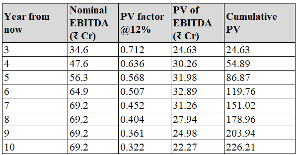 Even at year 10 from now (8 years of operations), we haven’t recovered the PV of the initial ₹300 Cr capex.