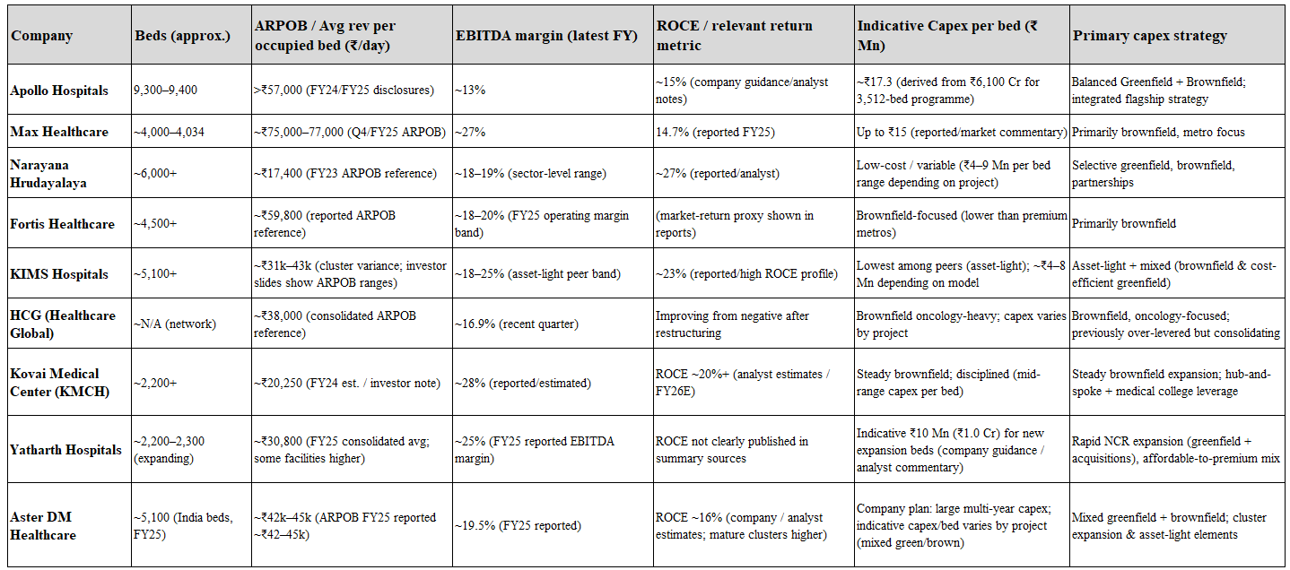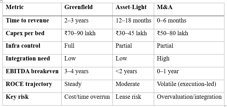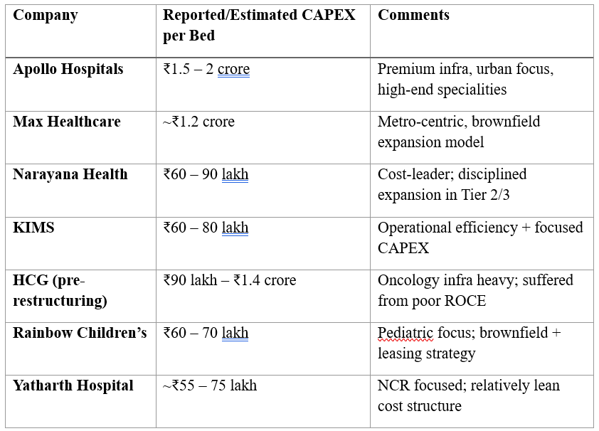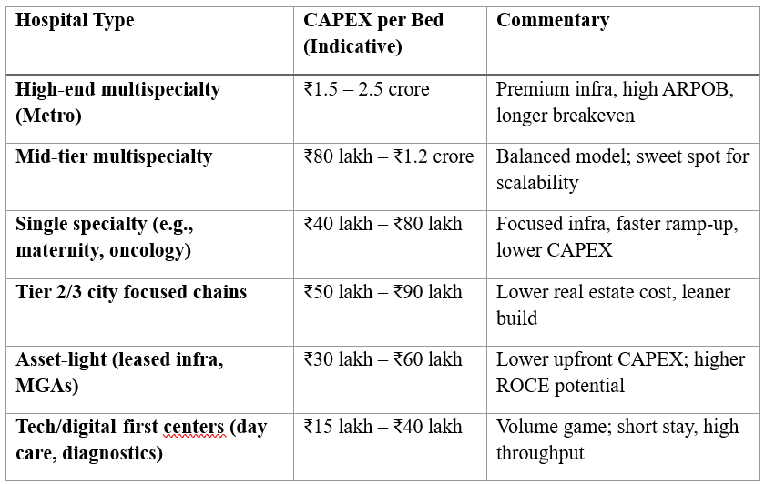 This is also why metrics like CAPEX per bed matter so much. It’s one of the purest lenses to compare across models. In India: