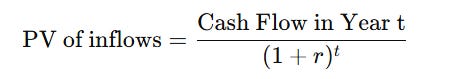 A ₹1 crore EBITDA loss in Year 2 is far more damaging than the same loss in Year 10 because early cash flows are worth more.