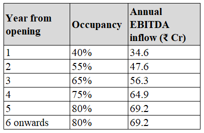 Cumulative EBITDA inflow hits ₹300 Cr between year 5 and 6 after opening.